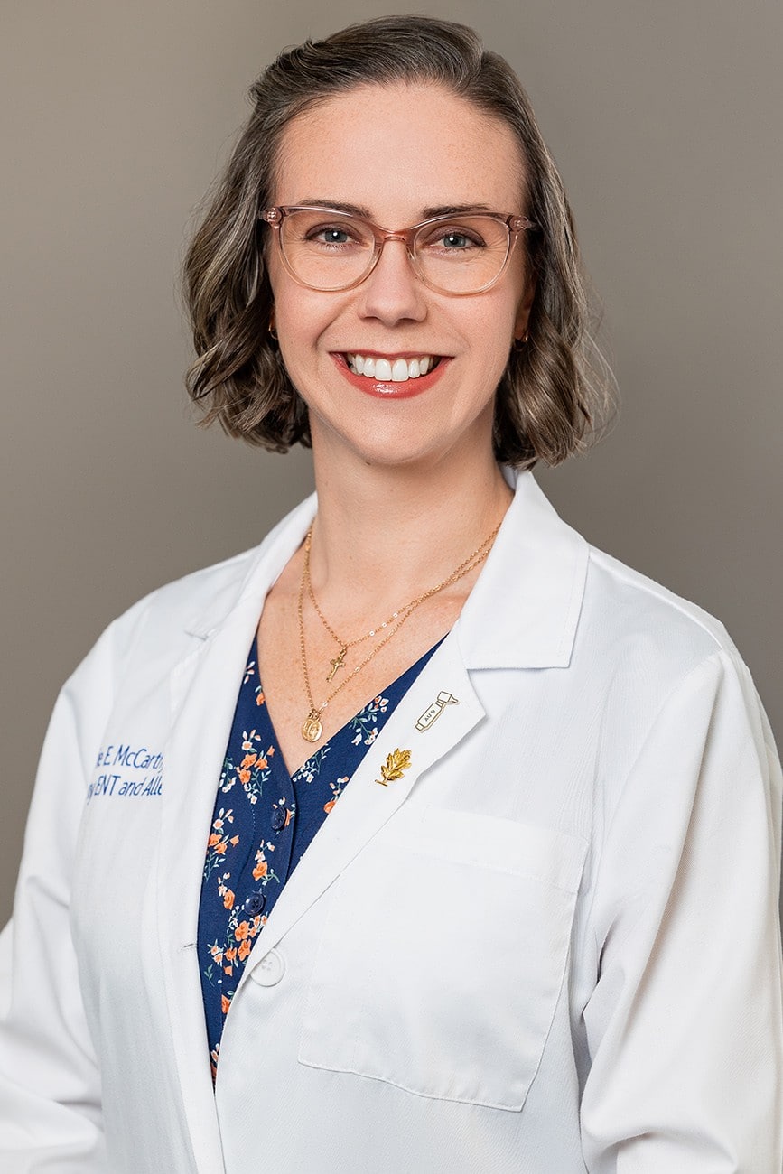 Dr. McCarthy is an audiologist specializing in the treatment of hearing loss, tinnitus, and providing preventative education. She attended the College of Saint Rose and received her doctorate of audiology from Indiana University. Prior to joining the AENT family, Dr. McCarthy served as an audiologist in the U.S. Navy at home and abroad. Dr. McCarthy is a member of multiple professional organizations and holds a Certificate of Clinical Competence – Audiology from the American Speech-Language-Hearing Association.